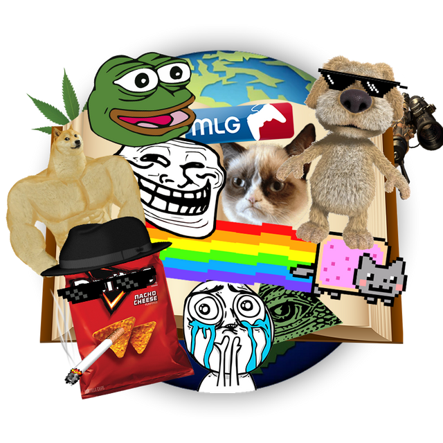 From 2013 to 2017, MLG (originally an esports group) popularized video game-related memes. It introduced the modern montage, shaping a culture we now call MLG. Eye-catching images and bright colors became popularized during this time. An honorable mention goes to the Illuminati memes.